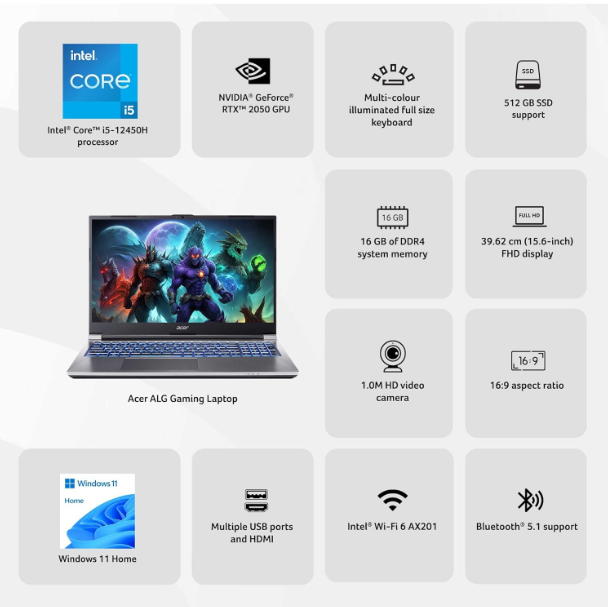 Unleash unparalleled performance and stunning visuals with the Acer ALG, meticulously renewed to deliver an exceptional computing experience. Powered by the advanced 12th Generation Intel Core i5-12450H processor, this laptop is engineered for seamless multitasking, intensive productivity, and immersive entertainment, ensuring you stay ahead in every endeavor.